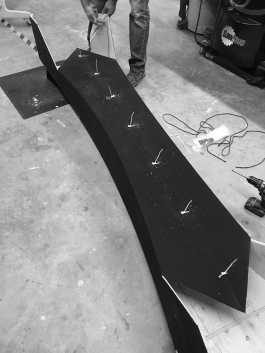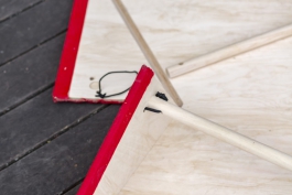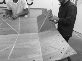 The end product is laminated, CNC’d and assembled in less than an hour. All the connection details are machined, strung together, and twisted to tension the toggle.